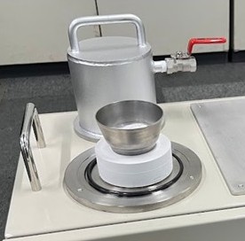 本製品は溶湯中のガスを簡易的に測定するための減圧凝固測定装置で、良否はサンプルの比重で判定します。
